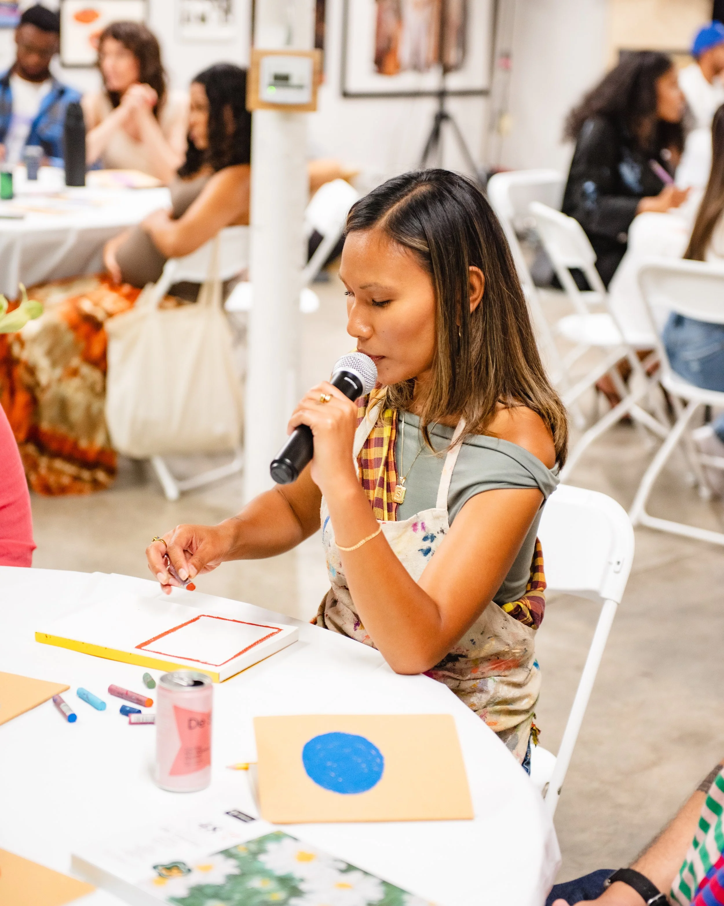 Olivia Sawai is a self-taught artist based in Long Beach, California. Her passion for creating began as an act of self-care and expression. Sawai’s work is multifaceted — combining funky and abstract color blocking shapes, in addition to mindfulness and self-love through her typography. Sawai intends to use her work to spread awareness of the importance of mental health while cultivating a supportive community.