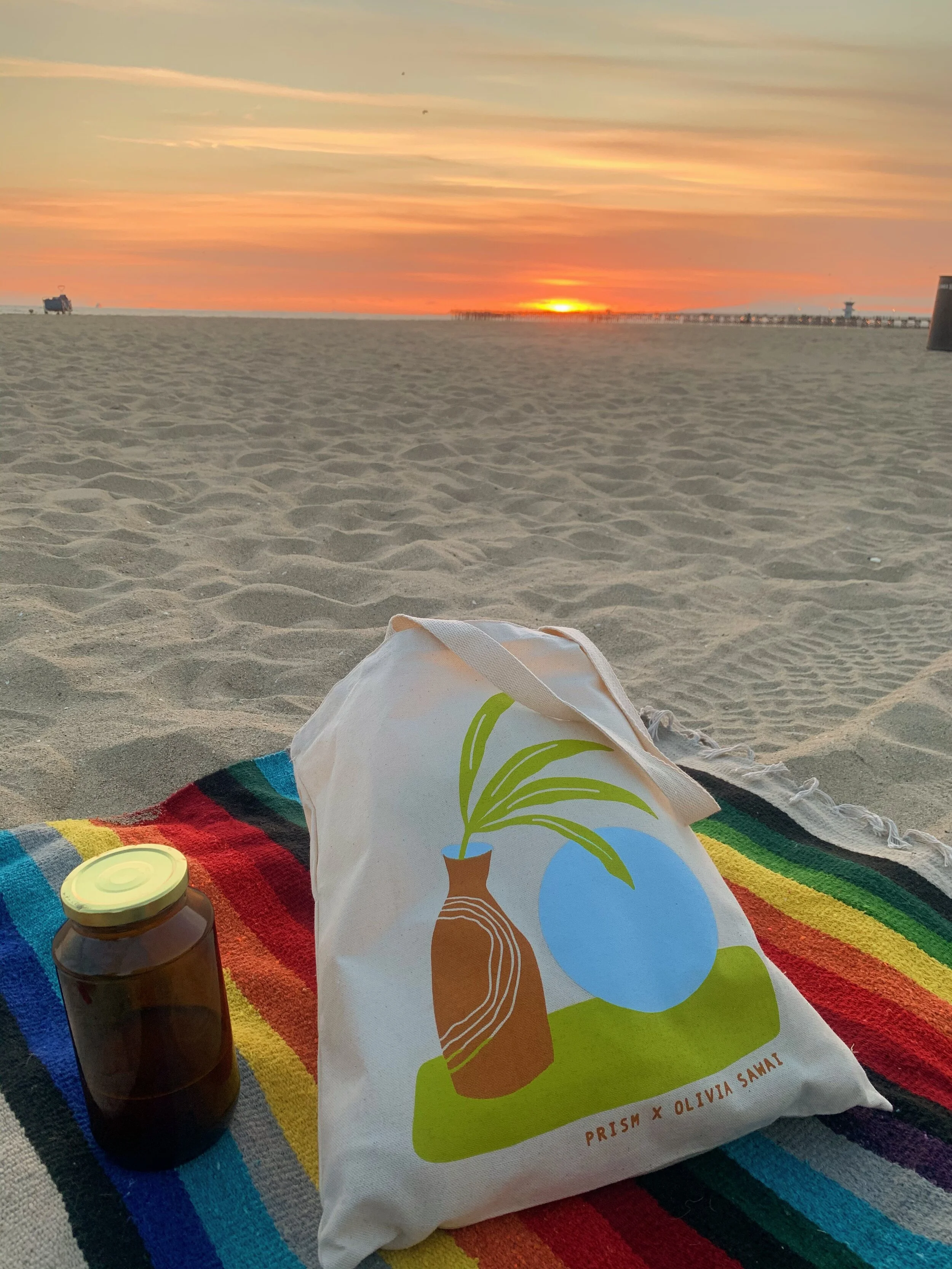 The Prism Boutique mural was completed at the beginning of Summer 2020 in Long Beach, California. I was inspired by the nature of the shop, the local pieces and the flourishing energy of each individual who worked there. The mural is the perfect selfie photo op. I made something that would complement the uniqueness of the shop while providing functionality. We also collaborated on an exclusive art print and custom tote bag.